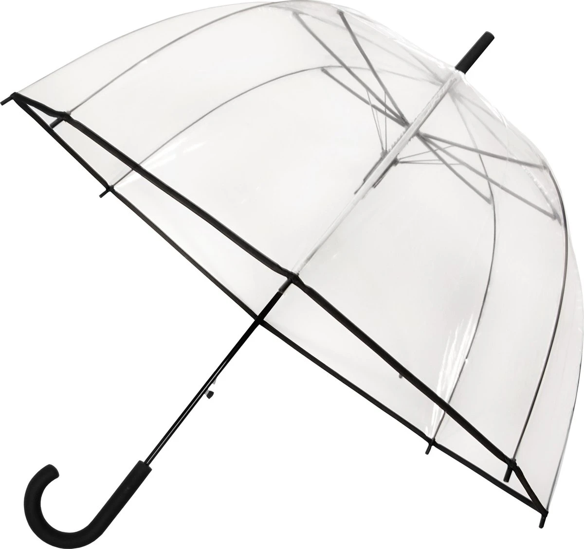 Deze doorzichtige paraplu van Falconetti beschikt over een haak en straalt pure klasse uit. Het handvat is zwart gekleurd. De rand van de paraplu is ook zwart gekleurd. Deze koepelparaplu is automatisch te openen door te drukken op het knopje. Het frame is gemaakt van glasfiber.